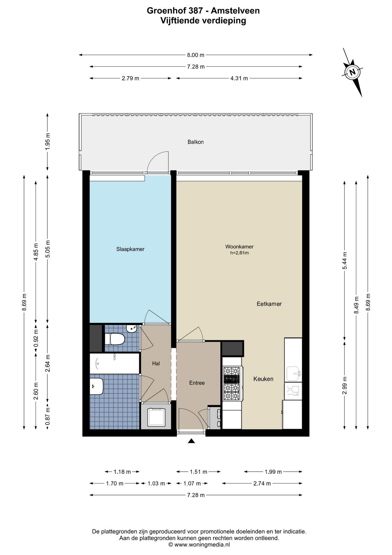 Het verkochte is gemeten met gebruikmaking van de Meetinstructie, welke is gebaseerd op de normen zoals vastgelegd in NEN 2580. De Meetinstructie is bedoeld om een meer eenduidige manier van meten toe te passen voor het geven van een indicatie van de gebruiksoppervlakte. De Meetinstructie sluit verschillen in meetuitkomsten niet volledig uit door bijvoorbeeld interpretatieverschillen, afrondingen en beperkingen bij het uitvoeren van een meting.